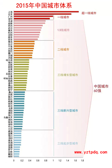 據了解,仲量聯行基于GDP、人口、富裕程度、投資、零售額、居民儲蓄、教育基礎設施、土地出讓量和零售商數量等多個變量建立模型,從287個城市中最終篩選出中國城市60強。不過,60強并不包括中國最發(fā)達的“北上廣深”。這個體系中,上海和北京作為“超一線”城市,廣州和深圳作為“一線城市”,他們是評出60強的“基準”。江蘇省入榜的9城中,南京和蘇州為1.5線城市;無錫為二線城市;常州為三線增長型城市;南通、徐州為三線新興型城市;淮安、鹽城和揚州則為三線起步型城市。
