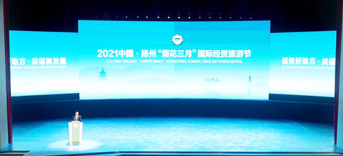 4月18日,2021中國·揚(yáng)州“煙花三月”國際經(jīng)貿(mào)旅游節(jié)開幕式暨重大項(xiàng)目簽約儀式在運(yùn)河大劇院舉行。